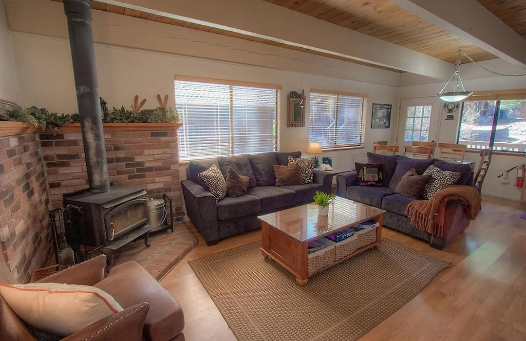 Cozy Mountain Hideaway Homeの設備の整った台所で自身の食事を作ることもできます。 最寄りのリノ・タホ国際空港は寝室2室の別荘から60キロメートルの距離にあります。